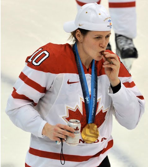 I for one think its awesome that the Canadian Women's Hockey Team let loose on the ice with an improtu party after they won the gold medal at the Olympics. They drank champagne and beer, smoked cigars and had a blast. They even tried to drive the Zamboni around in celebration.